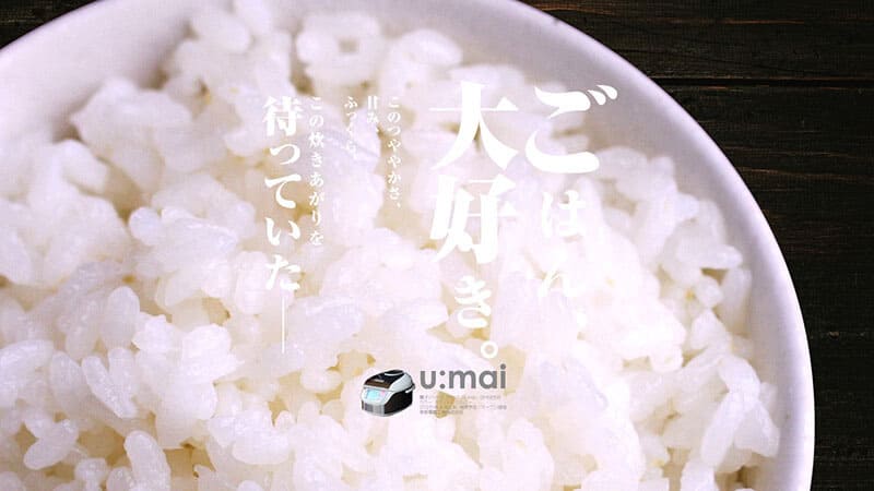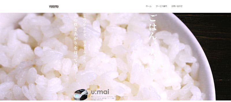 架空の炊飯器の商品紹介サイトにおけるヒーローイメージ。パターン【B】。