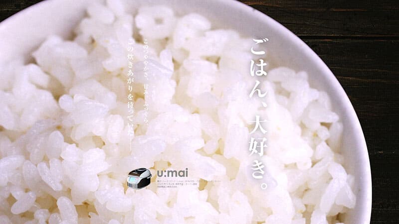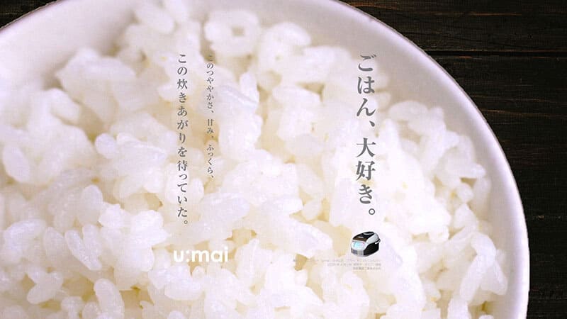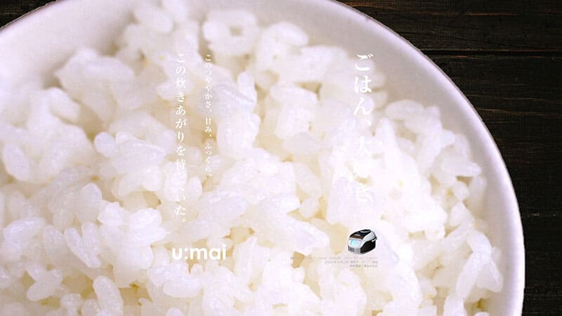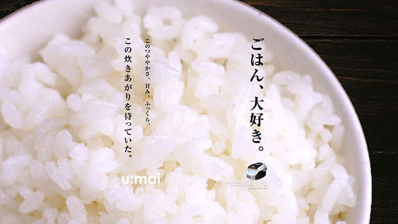 ご飯の写真を極端に大きくすることで、クライアントの意向である「炊き上がりの良さのアピール」をより強く表現。