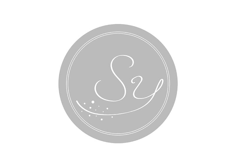 ロゴは、Sさんの名前の頭文字「s」と、Sさんの出身地域の頭文字「y」を組み合わせて作っている。 Y地区は海の近くの町であり、「y」のはらいの部分には「○」と「◇」を散りばめて海の水しぶきを表現した。 「s」と「y」の文字はペンタブで描いた。マウスで描くより断然きれいに描けるが、それでも理想通りの線を描くにはやはり練習が必要。