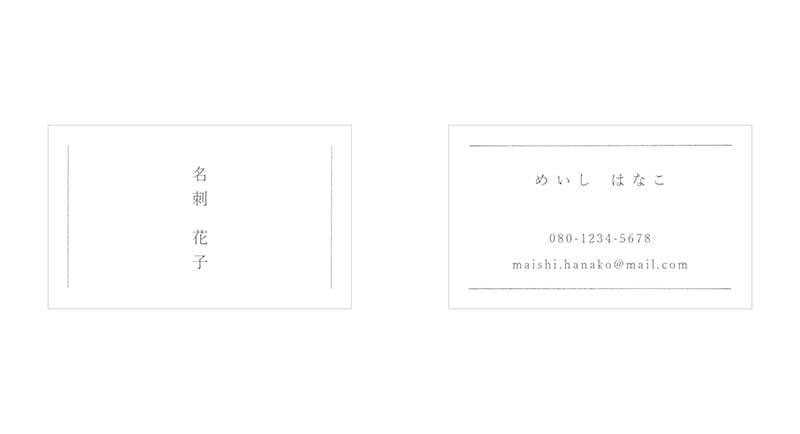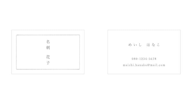 そんなKさんのまっすぐな姿勢を表現したいと考え、表面は中央に名前のみを配置。ふりがなも含めた他の情報はすべて裏面へ。そうすることでKさん自身の存在を際立たせた。